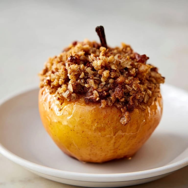 Save Tender baked apples filled with a wholesome oat and nut crumble, offering natural sweetness with less sugar. A comforting, healthier dessert perfect for cooler days.