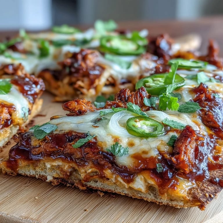 One Saturday, I invited a handful of friends for a casual backyard dinner, and this flatbread pizza became a centerpiece without even trying. I watched folks swap toppings, drizzle extra sauce, and basically claim slices before they even hit the cutting board. Someone spilled a little BBQ sauce and the dog instantly swooped in—hot tip: keep pets clear until you plate the food. There was chatter about whether mozzarella or smoked Gouda was the best cheese, but honestly, everyone was too busy licking their fingers to care much. It became the kind of night you measure by laughter and empty plates rather than time.