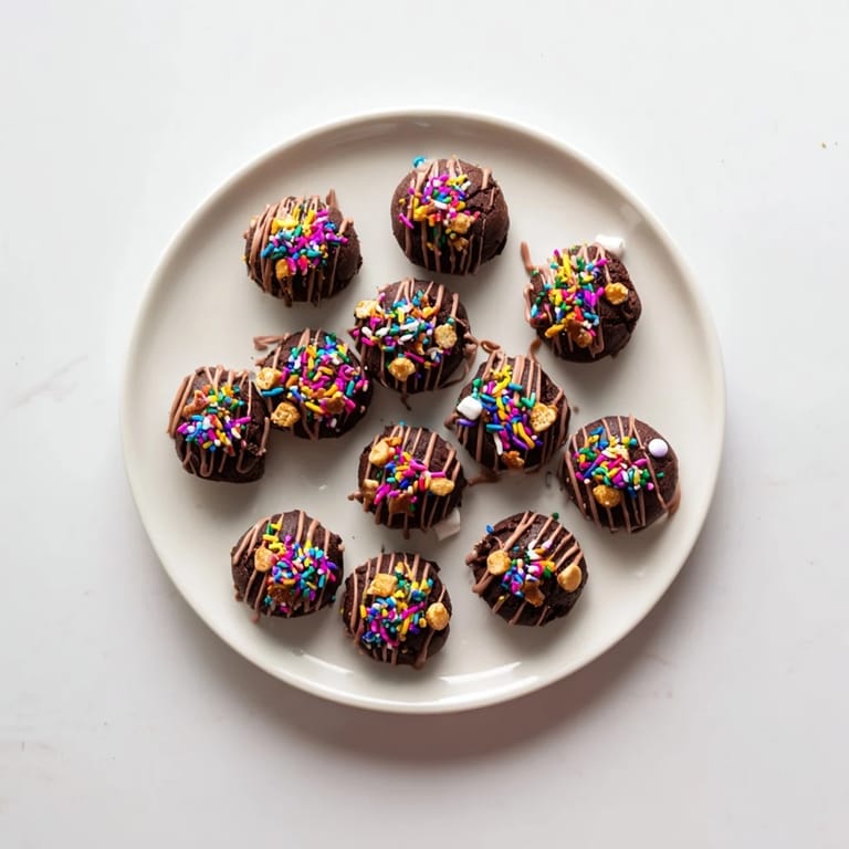 Save Decadent, fudgy chocolate cake bites with a playful mix of textures and colors—a whimsical treat inspired by the chaos baking trend. Perfect for parties or anytime you crave a little fun!