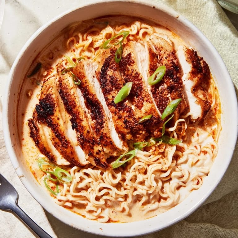 This recipe came about during a chilly evening when I was craving that punchy, spicy noodle bowl with a comforting creaminess. After some trial and error, I found that a balance between fiery chicken and rich garlic sauce resulted in a ramen dish my family requests often.