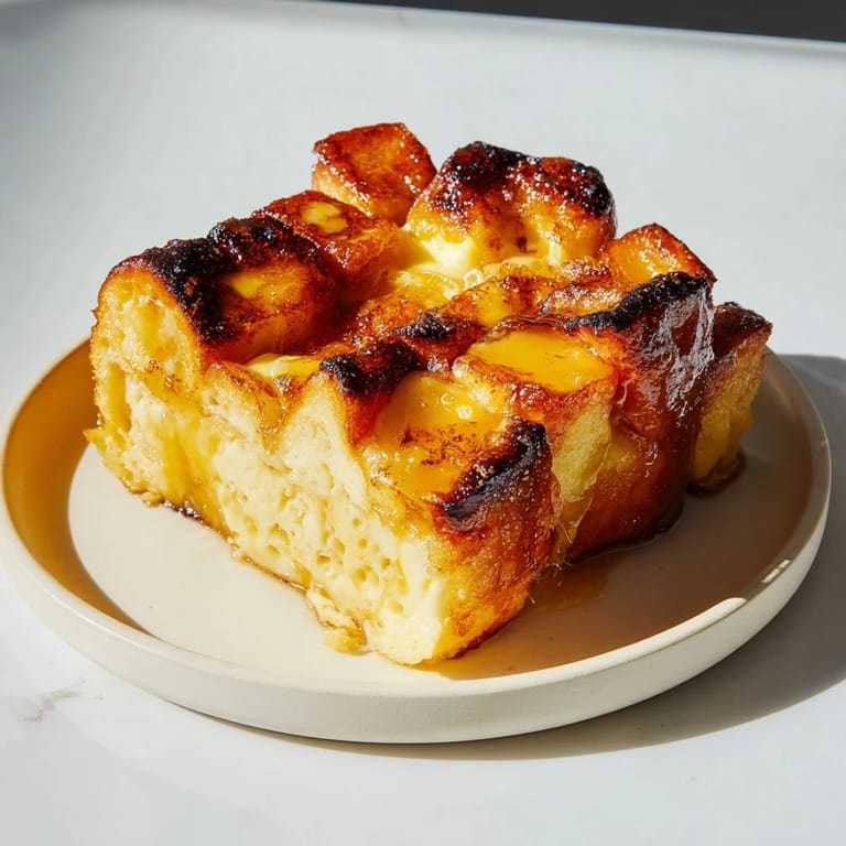 Save A warm, comforting breakfast casserole featuring custardy day-old bread, baked to golden perfection with hints of cinnamon and vanilla.