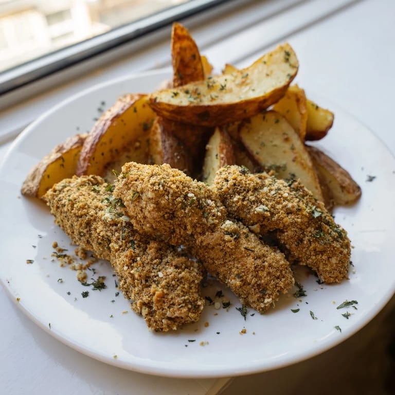 I first made this for a busy weeknight dinner when everyone needed a comforting, home-cooked meal. The herbaceous coating on the chicken is a favorite at our table, and the crispy potato wedges always disappear fast.