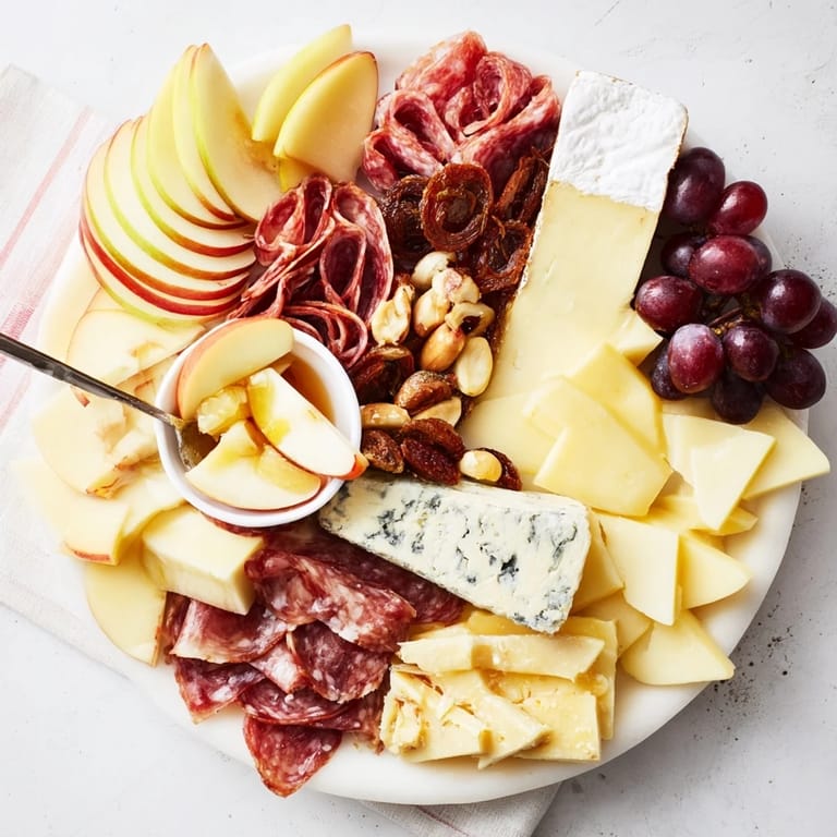 Save A sophisticated and beautifully arranged grazing board featuring an array of fine cheeses, delicate charcuterie, fresh fruits, and artisan accompanimentsβperfect for upscale gatherings or special occasions.