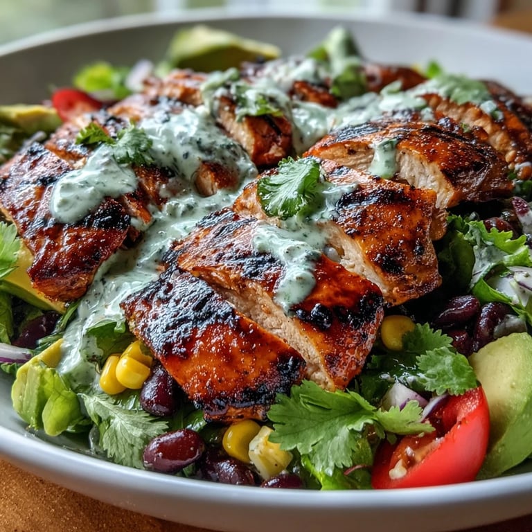 This salad is genuinely flexible despite how specific it sounds, which is part of what makes it feel less like following a recipe and more like cooking from intuition. The chicken can become shrimp if you want something lighter, or pressed tofu if you're cooking vegetarian and want that smoky-spiced element. Roasted pepitas add a nutty crunch that transforms the texture, tortilla chips bring indulgent saltiness, and a squeeze of jalapeño or a handful of cotija cheese pushes everything in different directions—all of it works.
