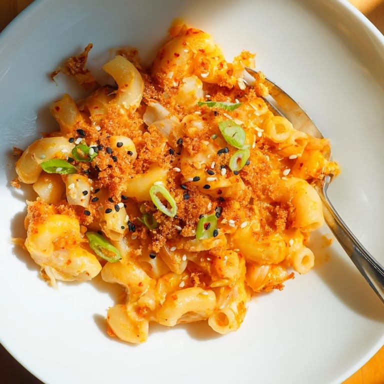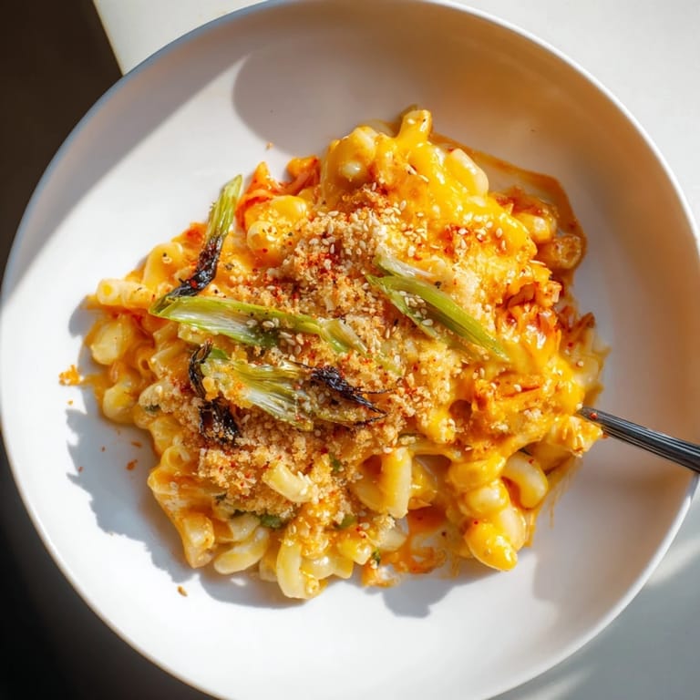 Save A bold and creamy comfort classic reimagined with tangy kimchi, melty cheeses, and a crunchy sesame topping—a viral sensation inspired by Tineke Younger.