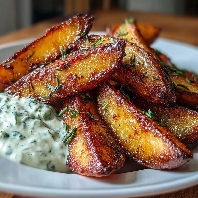 Save My air fryer sat on the counter for weeks before I really understood what it could do, until a friend casually mentioned how theirs made potato wedges that rivaled the ones from their favorite pub. That casual comment sparked something, and suddenly I was experimenting with angles, temperatures, and that magical shake halfway through. The first batch came out golden and impossibly crispy on the outside, tender inside, and I realized I'd been missing out on one of the simplest joys in the kitchen. Paired with a cool, tangy spring onion dip, these wedges became my go-to whenever I needed something that looked fancy but required barely any fuss.